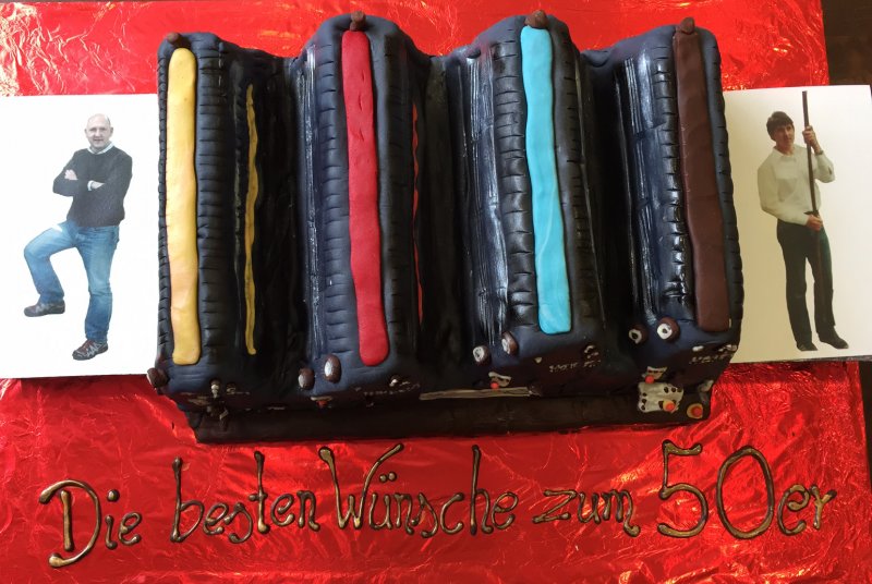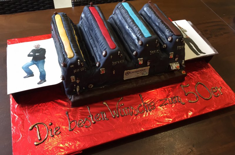 Anfang März feierte unser Chef Peter Aschenbrenner seinen 50. Geburtstag. Die Belegschaft der Druckerei Aschenbrenner spendierte einen köstlichen Kuchen in der Form unserer Speedmaster SX 52 4-Farben-Druckmaschine.
