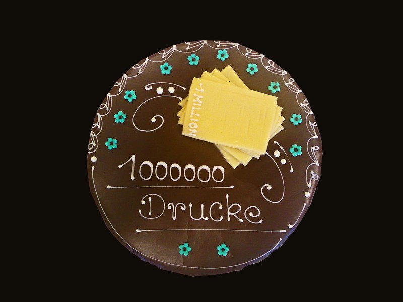1 Million Drucke auf unserer Minolta-Digitaldruckmaschine waren der Grund für diese nette Aufmerksamkeit durch die Firma Minolta. Recht herzlichen Dank im Namen der gesamten Belegschaft.