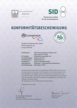 Dieses Qualitätszertifikat nach ISO 12647-2 steht für kontinuierliche Qualität im Produktionsprozess der Druckerei.